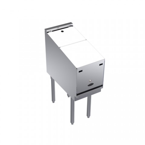 Royal Series Underbar Liquor Bottle Display Unit with removable locking cover, freestanding, 12"W x 24"D (to match speedrail depth), holds (12) liquor bottles, (4) bottle steps with guard rails, stainless steel top, front, & sides, galvanized steel back & bottom, stainless steel legs with adjustable thermoplastic bullet feet, NSF