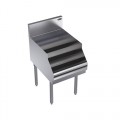 Royal Series Underbar Liquor Bottle Display Unit, freestanding, 18"W x 24"D (to match speedrail depth), holds (16) liquor bottles, (4) bottle steps with guard rails, stainless steel top, front, & sides, galvanized steel back & bottom, stainless steel legs with adjustable thermoplastic bullet feet, NSF