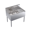 Royal Series Underbar Sink Unit, two compartment, 36"W x 24"D, 10" wide x 14" front-to-back x 10" deep compartments, 12" embossed drainboard on right, deck mount Royal Series faucet with swing spout (low lead compliant), apron on front & sides, (2) removable overflow standpipes, stainless steel top, front, & sides, stainless steel legs with adjustable thermoplastic bullet feet, NSF