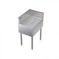 Royal Series Underbar Corner Drainboard, free standing, 18"W x 24"D x 36-1/2"H O.A., left end return, embossed top with 1" drain, stainless steel top, front, & sides, stainless steel legs with adjustable thermoplastic bullet feet, NSF