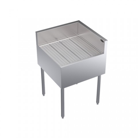 Royal Series Underbar Corner Drainboard, free standing, 24"W x 24"D x 36-1/2"H O.A., right end return, embossed top with 1" drain, stainless steel top, front, & sides, stainless steel legs with adjustable thermoplastic bullet feet, NSF