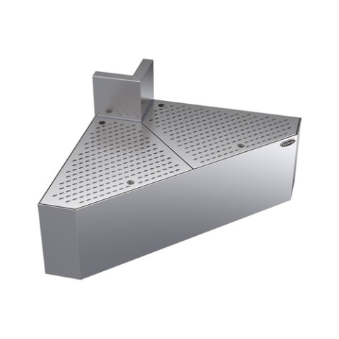 Royal Series Underbar Corner Angle Filler, front corner, 90° angle, 24" front to back (to match speedrails), clipped corner, drop-in perforated drainboard top with 1" drain, stainless steel top, front, & sides, (1) stainless steel leg with adjustable plastic bullet foot, NSF