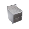 Royal Series Underbar Glass Rack Storage Unit, drainboard top, 24"W x 24"D, open front cabinet base with intermediate shelf, holds (2) 20" x 20" glass racks (not included), embossed top includes 1" drain, stainless steel top, front, & sides, galvanized steel back & bottom, stainless steel legs with adjustable grey plastic bullet feet, NSF