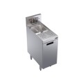 Royal Series Underbar Speed Station, with cabinet base & locking hinged door, 12"W x 24"D O.A., dump sink, dual speed rinsers with pressure regulators, 10" x 12" x 7" deep sink bowl, splash mount Royal Series faucet, 1-1/2" center drain, removable perforated top, stainless steel top, front & sides, galvanized steel back & bottom, stainless steel legs with adjustable thermoplastic bullet feet, NSF