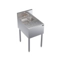 Royal Series Underbar Speed Station, 18"W x 24"D O.A., dump sink, (2) high performance push-down glass rinser faucets with pressure regulators, 10" x 14" x 7" deep sink bowl, splash mount Royal Series faucet, 1-1/2" center drain, perforated stainless cutout, stainless steel top, front, stainless steel legs with adjustable thermoplastic bullet feet, NSF