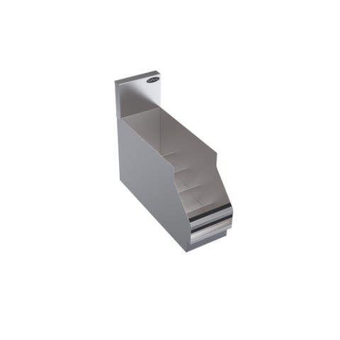 Royal Series Underbar Liquor Display, freestanding, space maximizing design, 8"W x 24"D, (5) bottle steps with guard rails, (10) bottle capacity, stainless steel top, front, & sides, galvanized steel back & bottom, NSF