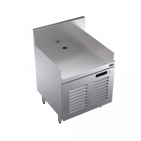 Royal Series Underbar POS Cabinet, 24”W x 24”D, 26” working height, locking louvered door, flat top with cord access, stainless steel side splashes, 20 ga. stainless steel interior & exterior, galvanized back & bottom, legs with adjustable thermoplastic bullet feet, NSF