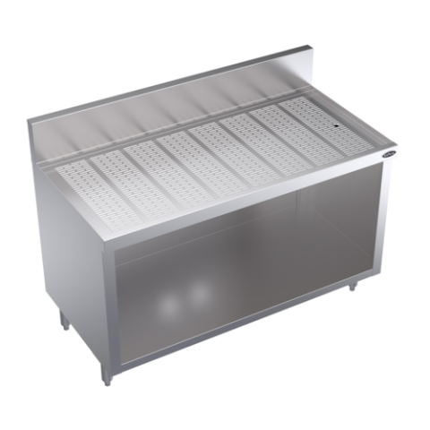 Royal Series Underbar Drainboard with open cabinet base, 48"W x 24"D, embossed drainboard top, open front cabinet base, stainless steel top, front, & sides, stainless steel legs with adjustable thermoplastic bullet feet, NSF (Midshelf optional, not standard)