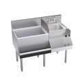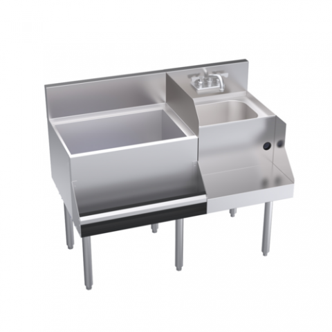 Royal Series Underbar Ice Bin/Cocktail Station, with blender station, 42"W x 24"D OA, 24"W ice bin on left with 10-circuit cold plate & bottle wells, 74 lbs. ice capacity, single speedrail, 18"W blender station on right with deep dump sink & duplex outlet, splash mount Royal Series faucet, stainless steel interior, stainless steel & galvanized exterior, stainless steel legs with adjustable thermoplastic bullet feet, NSF