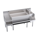 Royal Series Underbar Ice Bin/Cocktail Station with blender station & recessed drainboard, 60"W x 24"D OA, 12"W recessed drainboard, 36"W ice bin with 10-circuit cold plate & bottle wells, 110 lbs. ice capacity, single speedrail, 12"W blender station with dump sink & duplex outlet, splash mount Royal Series faucet, stainless steel interior, stainless steel & galvanized exterior, stainless steel legs with adjustable thermoplastic bullet feet, NSF