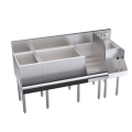 Royal Series Underbar Ice Bin/Cocktail Station, with blender & liquor stations, 60"W x 24"D OA, 12"W insulated bottle storage bin, 24"W ice bin with 10-circuit cold plate & bottle wells, 74 lbs. ice capacity, single speedrail, 12"W raised liquor display, 12"W blender station with dump sink & duplex outlet, splash mount Royal Series faucet, stainless steel interior, stainless steel & galvanized exterior, stainless steel legs with adjustable thermoplastic bullet feet, NSF