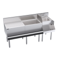 Royal Series Underbar Ice Bin/Cocktail Station with blender station & drainboard, 66"W x 24"D OA, 24"W drainboard, 24"W ice bin with 10-circuit cold plate & bottle wells, 74 lbs. ice capacity, single speedrail, 18"W blender station with dump sink, left splash, duplex outlet, splash mount Royal Series faucet, stainless steel interior, stainless steel & galvanized exterior, stainless steel legs with adjustable thermoplastic bullet feet, NSF