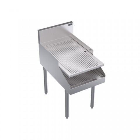 Royal Series Underbar Recesssed Drainboard, free standing, 18"W x 29"D, removable perforated drainboard insert, stainless steel top, front, & sides, stainless steel legs with adjustable thermoplastic bullet feet, NSF