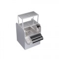 Royal Series Underbar Ice Bin/Cocktail Station, pass-thru combo, 36"W x 45"D x 45"H, 18"W pass-thru ice bin on right with 10-circuit cold plate, 24"W double speedrail, (2) dump sinks on left with (1) deck mount Royal Series gooseneck faucet (low lead compliant), 10"W blender shelf with duplex outlet, 18"D glass shelf with perforated insert & drain, includes 4" tubing chase with soda gun holder, stainless steel side panels, stainless steel legs with grey plastic bullet feet, NSF