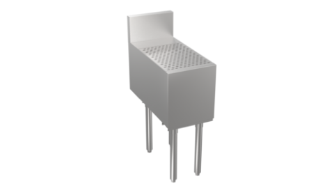 Stadium Series Underbar Drainboard, free standing, 12"W x 29"D, embossed top with 1" drain, stainless steel construction, stainless steel legs with adjustable bullet feet, 5” deep backsplash return to allow for utilities to be run directly behind equipment, increase equipment overall depth by 5"