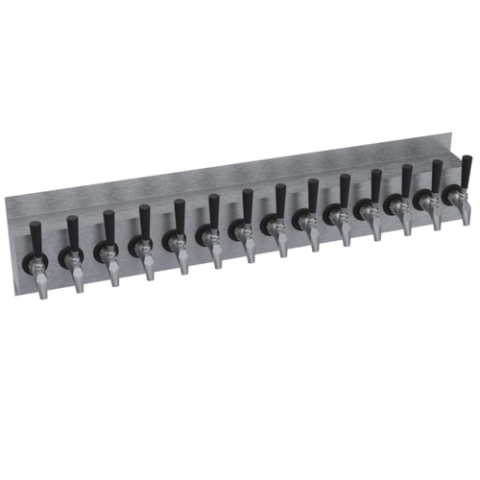 Krowne Wall Mount Tower, fourteen faucets, drip tray, handles and faucets not included, OA length 42", glycol cooled, brushed stainless steel finish