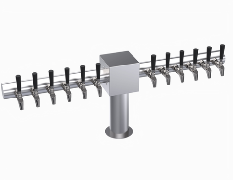 Krowne Yard Arm Tower, twelve faucets, handles and faucets not included, 46-1/4" OA length, glycol cooled, brushed stainless steel finish
