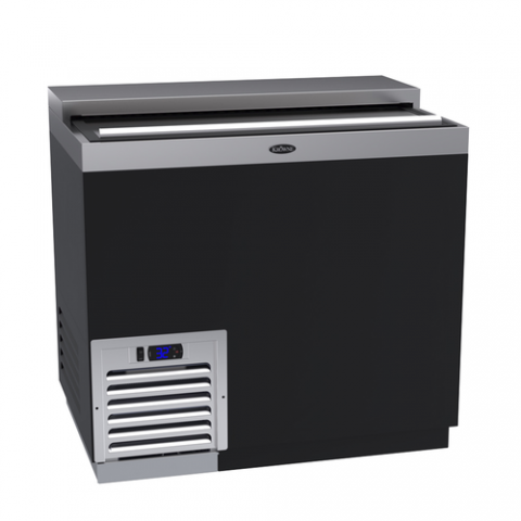 Underbar Glass Froster, slide top, 36"W x 24"D, self-contained refrigeration, 12° to 17°F temperature range, digital thermostat, (1) sliding door on top, interior floor rack & (2) layers of shelves, automatic defrost timer, automatic condensate evaporator, stainless interior & top, black vinyl clad exterior front & sides, R290 Hydrocarbon refrigerant, 1/3 HP, 115v/60/1-ph, 2.6 amps, cord with NEMA 5-15P, ETL