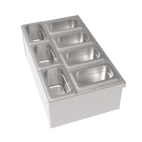 Condiment Tray Modular Insert, 12"W x 21"D x 6"H, (7) stainless steel condiment cups