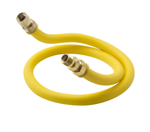 Krowne 3/4" I.D.,x 48" long, Stationary Gas Connector (Packed in Poly Bag), stainless steel construction with yellow antimicrobial PVC coating, durable swivel fittings, 5-year warrany