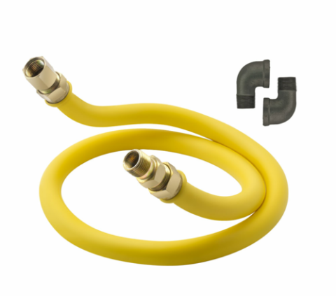Krowne 3/4" I.D.,x 48" long, Stationary Gas Connector Kit - Includes Gas Connector and (2) 90° Elbows (Packed in Color Box), stainless steel construction with yellow antimicrobial PVC coating, durable swivel fittings, 5-year warrany