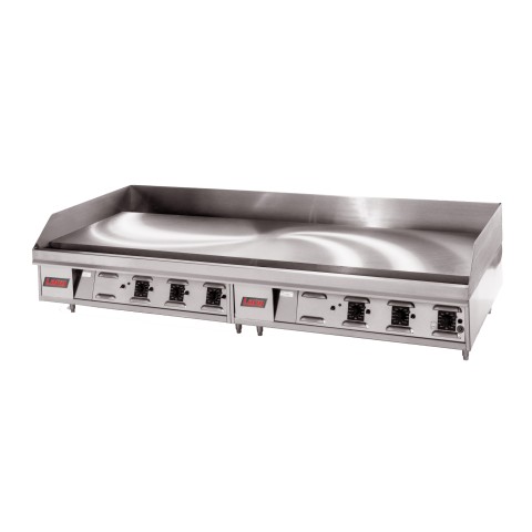 LG Series Griddle, countertop, gas, 60"W x 23"D cooking surface, 1" thick steel griddle plate, 200° - 450° F embedded electric snap-action thermostats with pilot safety, welded steel frame with stainless steel exterior, 5" tapered wrap-around splash guard, 3-1/2" front grease trough, 8 qt. stainless steel grease drawer, 4" adjustable stainless steel legs, 135,000 BTU, 120V/60/1-ph, NEMA 5-15P, UL, NSF