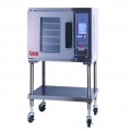 Convection Oven, electric, 1-deck, half-size, (5) 18" x 13" pan capacity, programmable LCD solid state knob controls & timer, 150-450°F range, 2-speed pulse fan, (9) rack positions, left hinged door with double pane window field reversible to right side, stainless steel exterior and interior, ENERGY STAR®, cULus, NSF