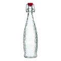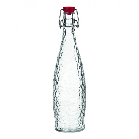 Glacier Bottle, 1 liter (33-7/8 oz.), red clamp top lip, with food safe rubber gasket, organic textured, glass (H 12-5/8"; T 1-3/8"; B 3-1/4"; D 3-1/2") (6 each per case)