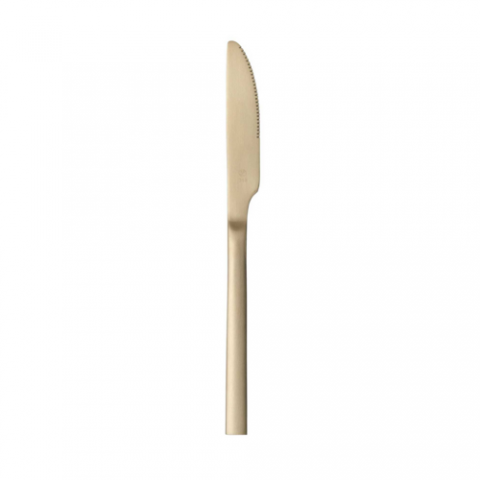 (Formerly World Tableware) Dinner Knife, 9", serrated blade, solid handle, 18/0 stainless steel, satin champagne gold finish, Elexa Satin Or (12 each per case)