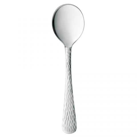 (Formerly World Tableware) Bouillon Spoon, 6-1/8", hammered mirror finish handle, 18/0 stainless steel, medium weight, Aspire (36 each per case)