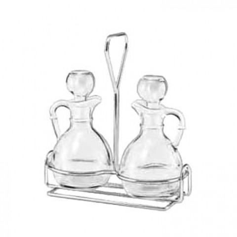 Cruet Set, 3 piece, 2 glass cruets with stoppers, wire rack (H 7-5/8"; T 1/8"; B 7"; D 7") (6 sets per case)