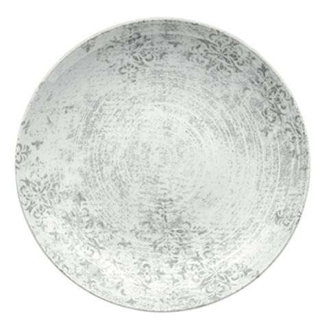 (Formerly Syracuse China) Plate, 11" dia., round, coupe, deep, scratch resistant, porcelain, Schonwald, Shabby Chic, structure grey with ornaments (6 each per case)