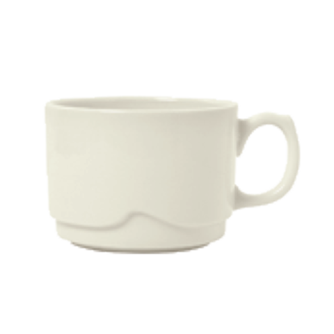 (Formerly Syracuse China) Cup, 12 oz., 5-1/4" dia. x 2-7/8"H, 2-7/8" dia. foot, large, stackable, Barista™ shape, Flint pattern & body color (902903 009) (24 each per case)