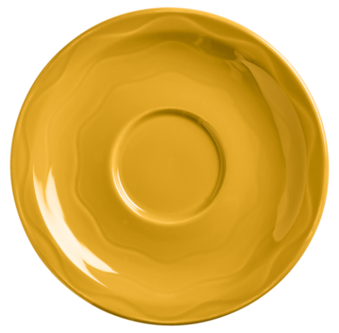 (Formerly Syracuse China) Saucer, 6-1/4" dia., 2-1/4" dia. well, round, fully vitrified, glazed foot, Cantina® carved pattern & shape, porcelain, saffron (12 each per case)