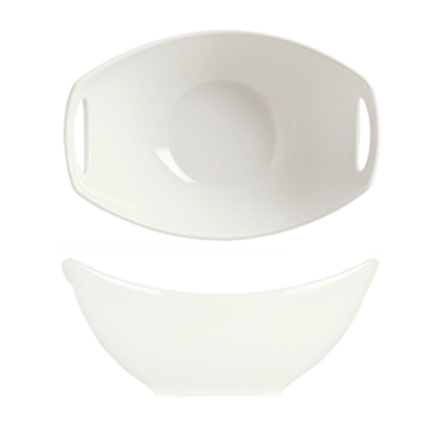 (Formerly Syracuse China) Bowl, 30 oz., 9-1/4" x 6-1/4" x 3-3/4"H, oval, with handles, fully vitrified, porcelain, Slenda® Practica pattern & shape, White Royal Rideau™ body color (12 each per case)