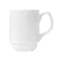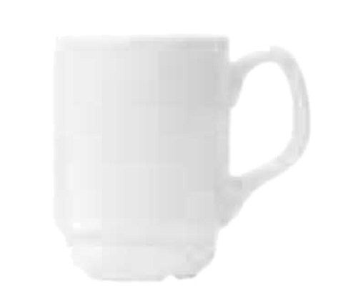 (Formerly Syracuse China) Mug, 8 oz., 4" dia. x 3-3/4"H, 1-5/8" dia. foot, with handle, stackable, fully vitrified, porcelain, Slenda® pattern & shape, White Royal Rideau™ body color (fits saucer 950002589) (36 each per case)
