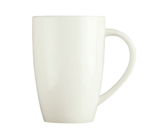 (Formerly Syracuse China) Mug, 12 oz., 4-1/4" dia. x 4-1/2"H, 2-1/8" dia. foot, fully vitrified, porcelain, Slenda® pattern & shape, White Royal Rideau™ body color (fits saucer 905356531) (12 each per case)