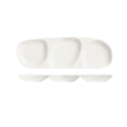 (Formerly Syracuse China) Compartment Serving Tray, 3-compartment, 13-1/2" x 4-3/4", fully vitrified, porcelain, Slenda® pattern & shape, White Royal Rideau™ body color (12 each per case)
