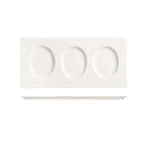 (Formerly Syracuse China) Compartment Serving Tray, 12-1/4" x 6", (3) 2-7/8" x 3-1/2" low profile wells, rectangular, fully vitrified, porcelain, Slenda® pattern & shape, White Royal Rideau™ body color (fits oval bowl 905356916) (12 each per case)