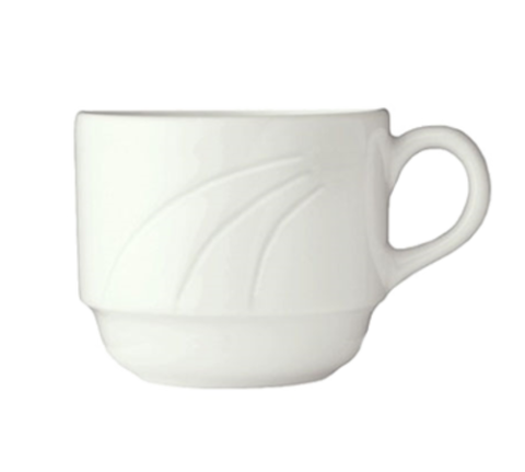 (Formerly Syracuse China) Tea Cup, 8-1/2 oz., 4-3/8" dia. x 2-3/4"H, 2" dia. foot, stackable, fully vitrified, porcelain, Élan pattern & shape, White Royal Rideau™ body color (fits saucer 905437886) (36 each per case)