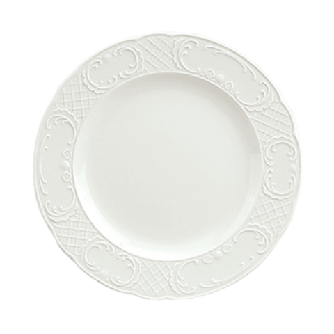 (Formerly Syracuse China) Plate, 10" dia., round, porcelain, Marquis pattern, Schonwald, Continental White™ (6 each per case)