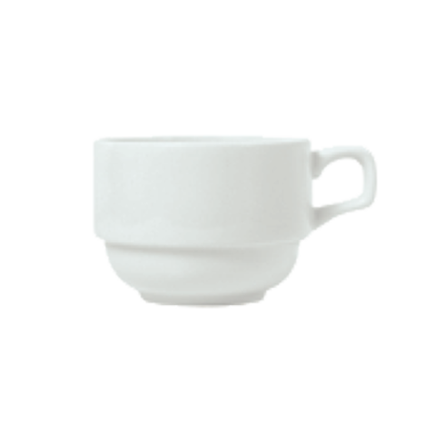 (Formerly Syracuse China) Cup, 8 oz., 4-1/2" dia. x 2-1/2"H, 1-7/8" dia. foot, stackable, polished foot, fully vitrified, porcelain, Reflections™ pattern & shape, Aluma White™ body color (fits saucer 911194 017) (36 each per case)