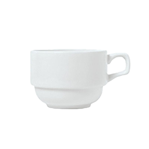 (Formerly Syracuse China) Espresso Cup, 4 oz., 3-5/8" dia. x 1-7/8"H, 1-5/8" dia. foot, stackable, polished foot, fully vitrified, porcelain, Reflections™ pattern & shape, Aluma White™ body color (fits saucer 911194 023) (36 each per case)