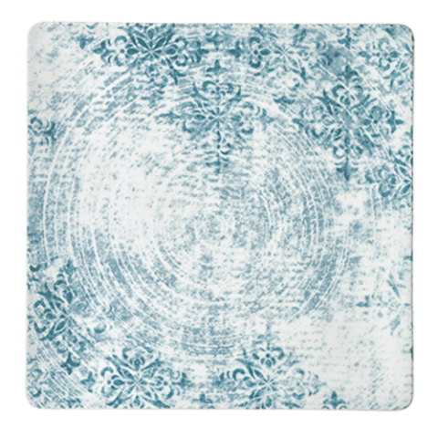 (Formerly Syracuse China) Plate, 9-1/2" x 9-1/2", square, coupe, scratch resistant, porcelain, Schonwald, Shabby Chic, structure blue with ornaments (6 each per case)