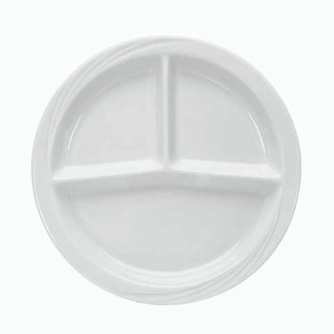 (Formerly Syracuse China) Plate, 3-section, 10" dia. x 1"H, round, porcelain, Donna pattern, Schonwald, Continental White™ (6 each per case)
