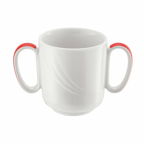 (Formerly Syracuse China) Mug, 10-1/2 oz., (H 3-3/8"; T 3-1/4"; F 2-1/8"), 2-handle, stackable, porcelain, Donna Senior pattern, Schonwald, Continental White™ with red band (6 each per case)