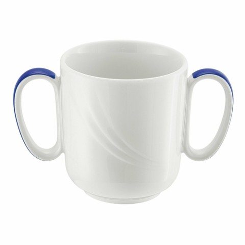 (Formerly Syracuse China) Mug, 10-1/2 oz., (H 3-3/8"; T 3-1/4"; F 2-1/8"), 2-handle, stackable, porcelain, Donna Senior pattern, Schonwald, Continental White™ with dark blue band (6 each per case)