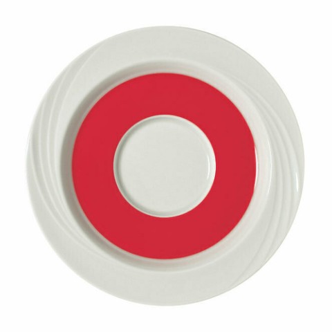 (Formerly Syracuse China) Saucer, 6-5/8" dia., 2-3/8" well, round, porcelain, Donna Senior pattern, Schonwald, Continental White™ with red band (12 each per case)