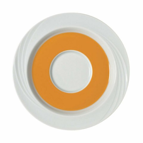 (Formerly Syracuse China) Saucer, 6-5/8" dia., 2-3/8" well, round, porcelain, Donna Senior pattern, Schonwald, Continental White™ with orange band (12 each per case)