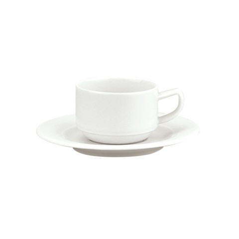 (Formerly Syracuse China) Espresso Saucer, 5" dia., 1-3/4" dia. well, round, fully vitrified, porcelain, Avanti Gusto pattern & shape, Schonwald, Continental White™ body color (12 each per case)